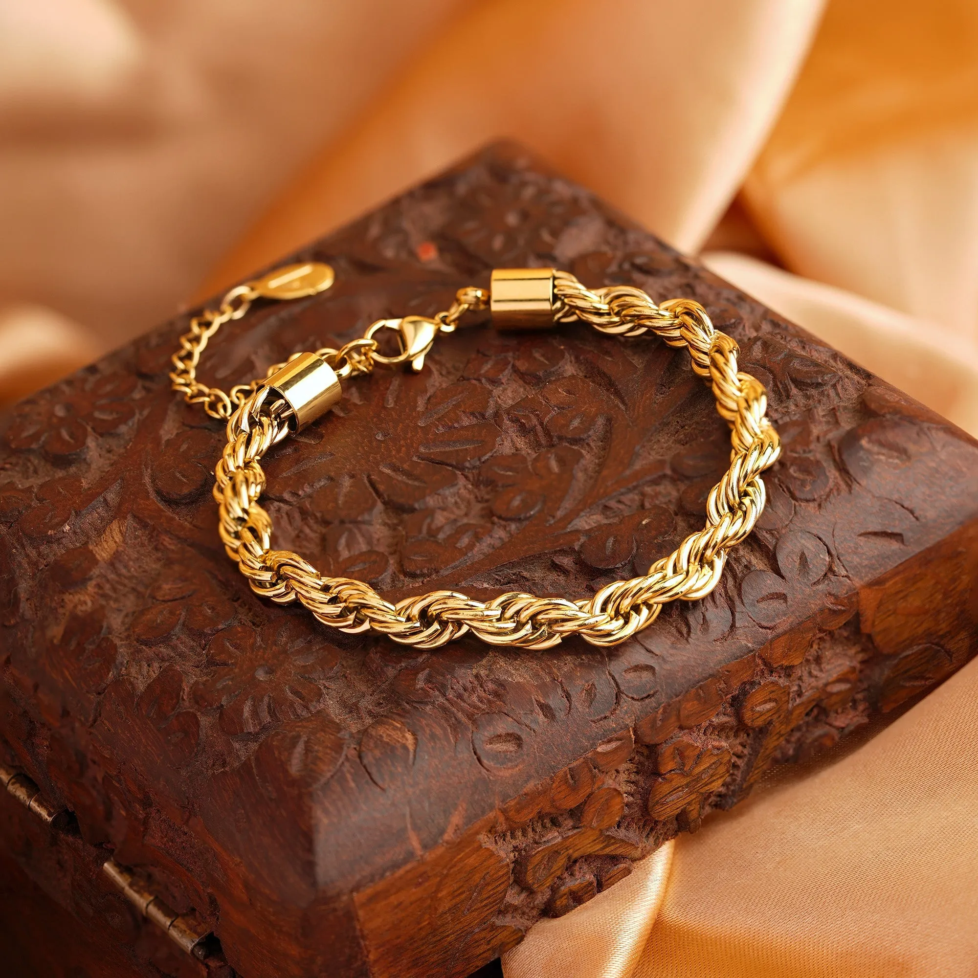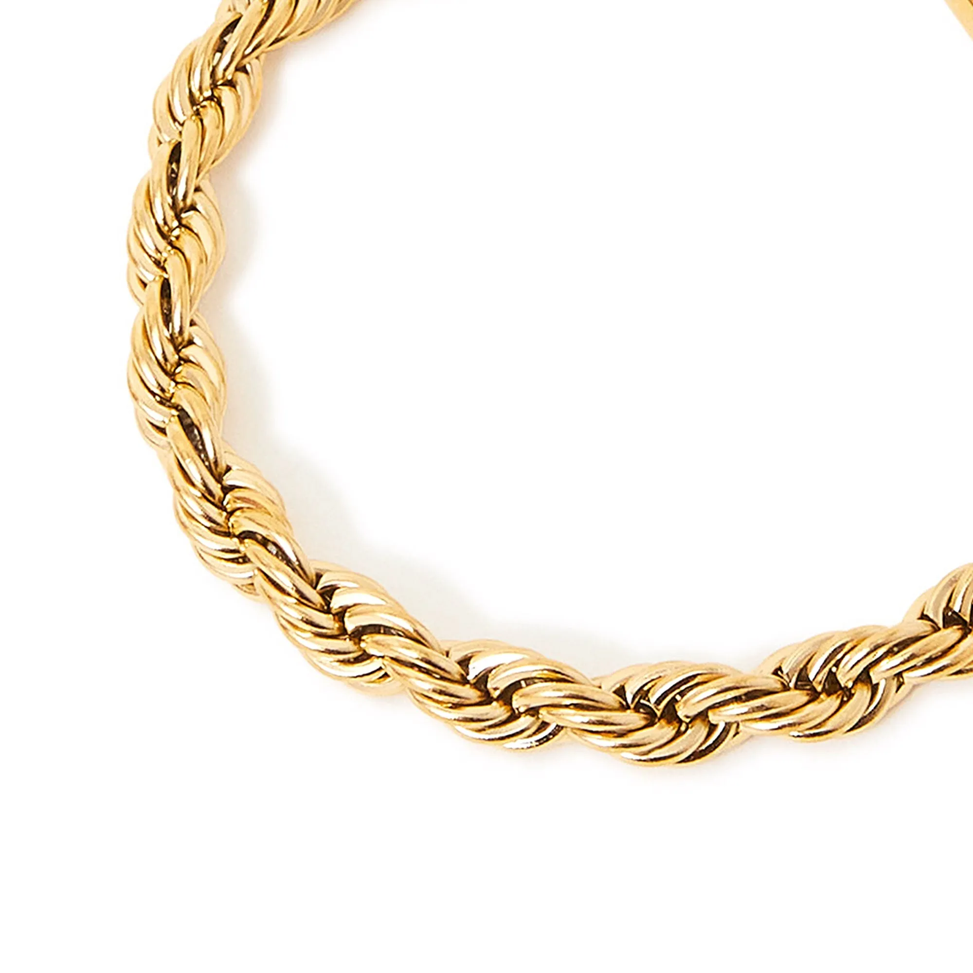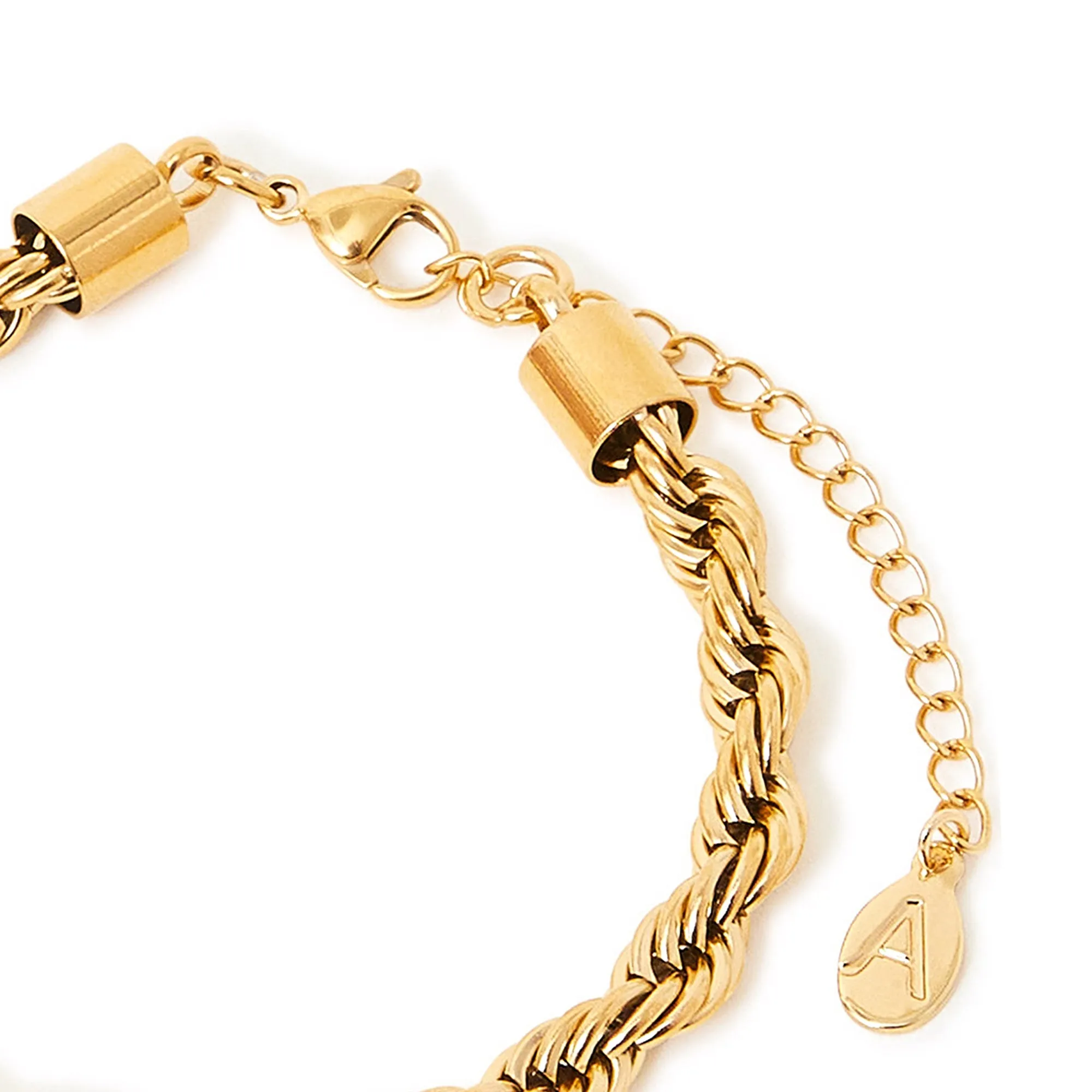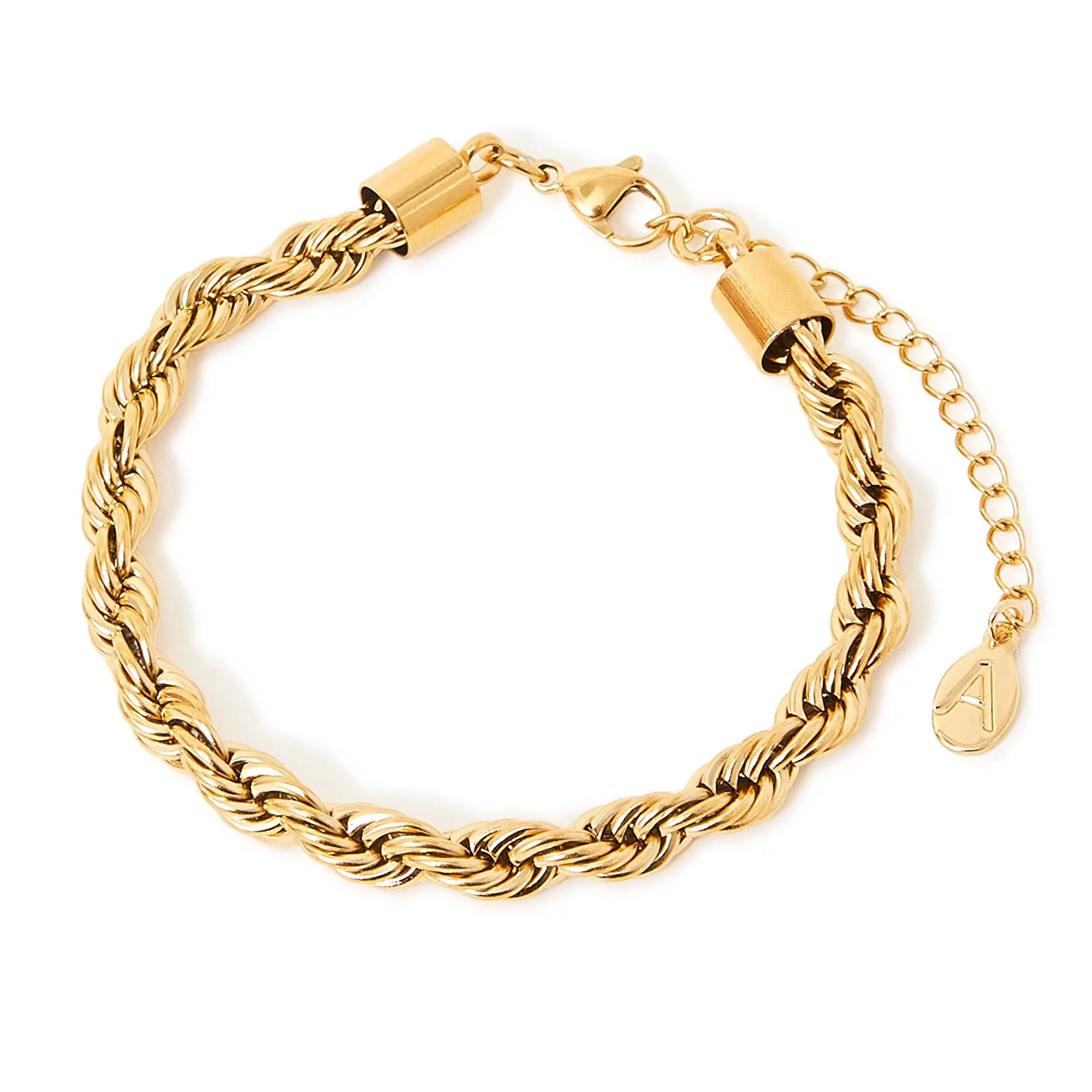 An easy-going style: this bracelet can be worn to bottomless brunch, or to the nightclub! Designed in gold-tone stainless steel with a twisted rope chain, it's swim, shower and sweat resistant making them ideal for every day. Fastens with a lobster clasp and extender.