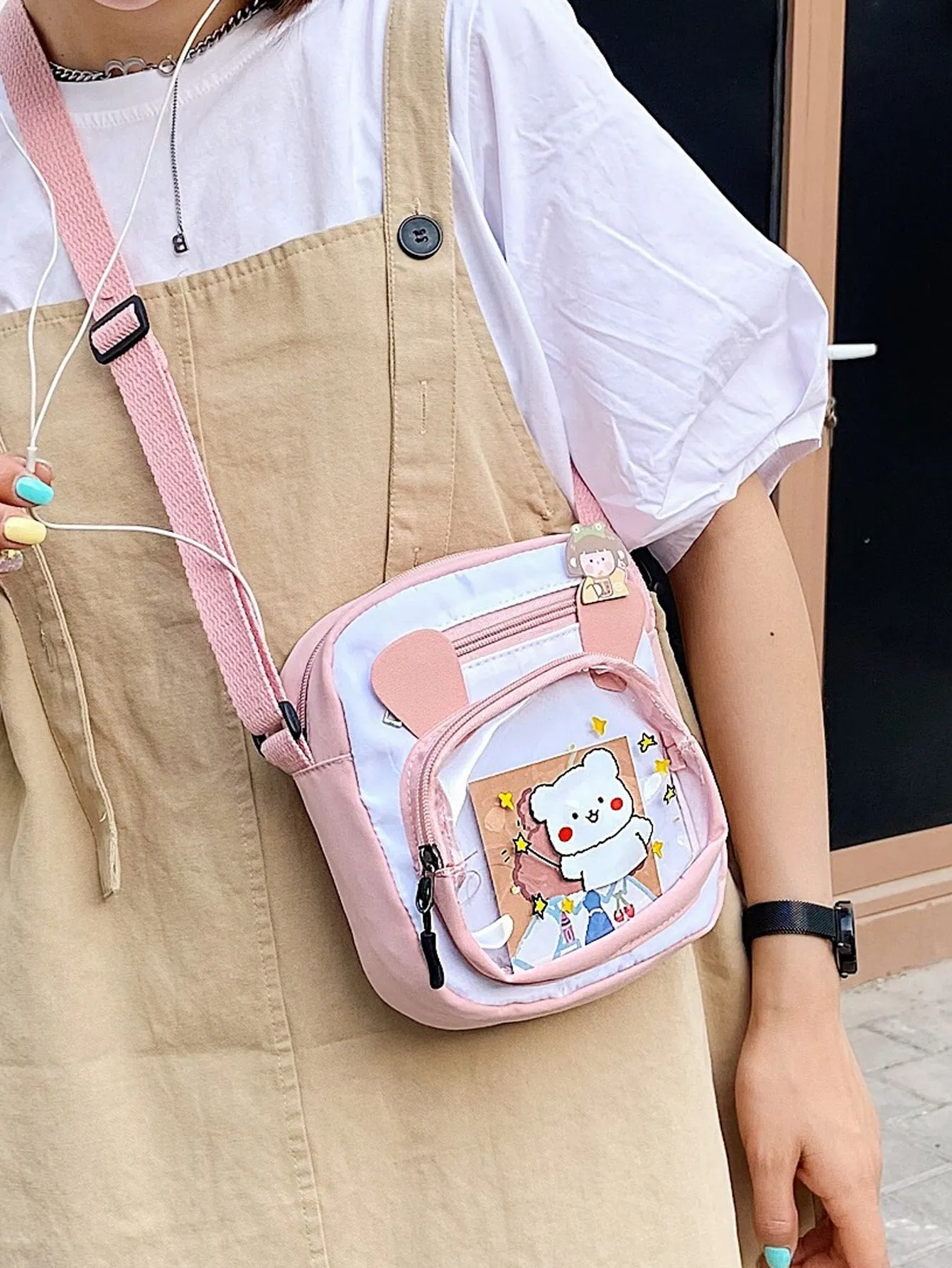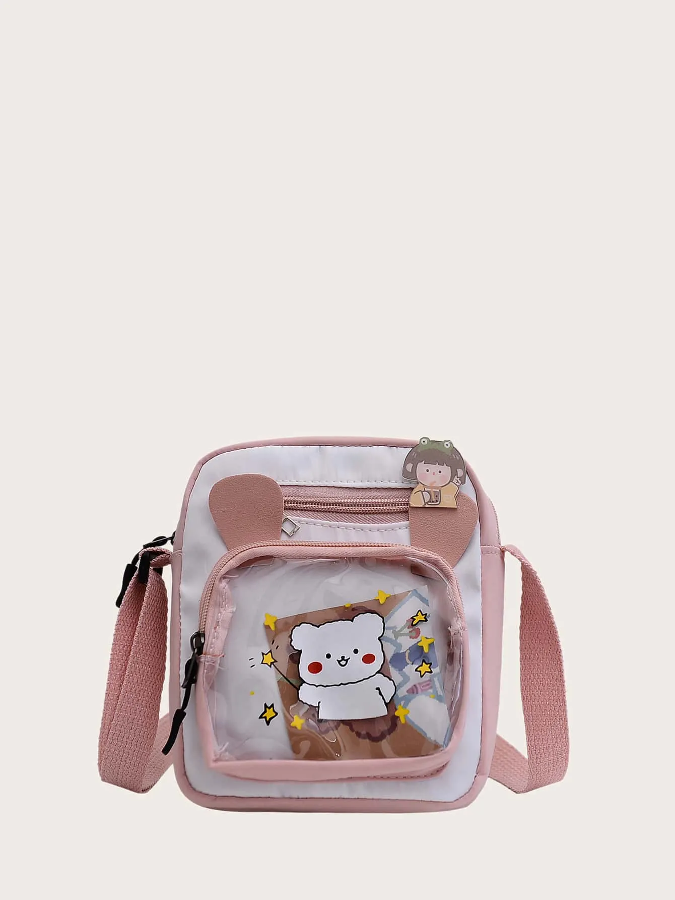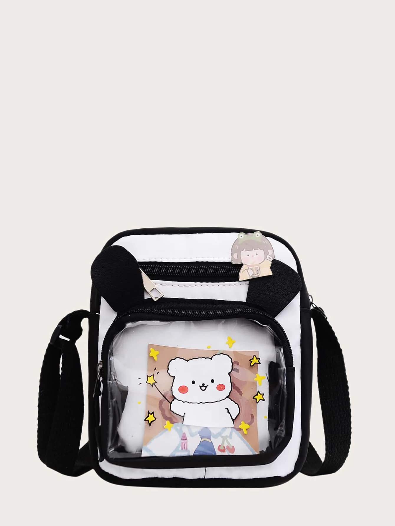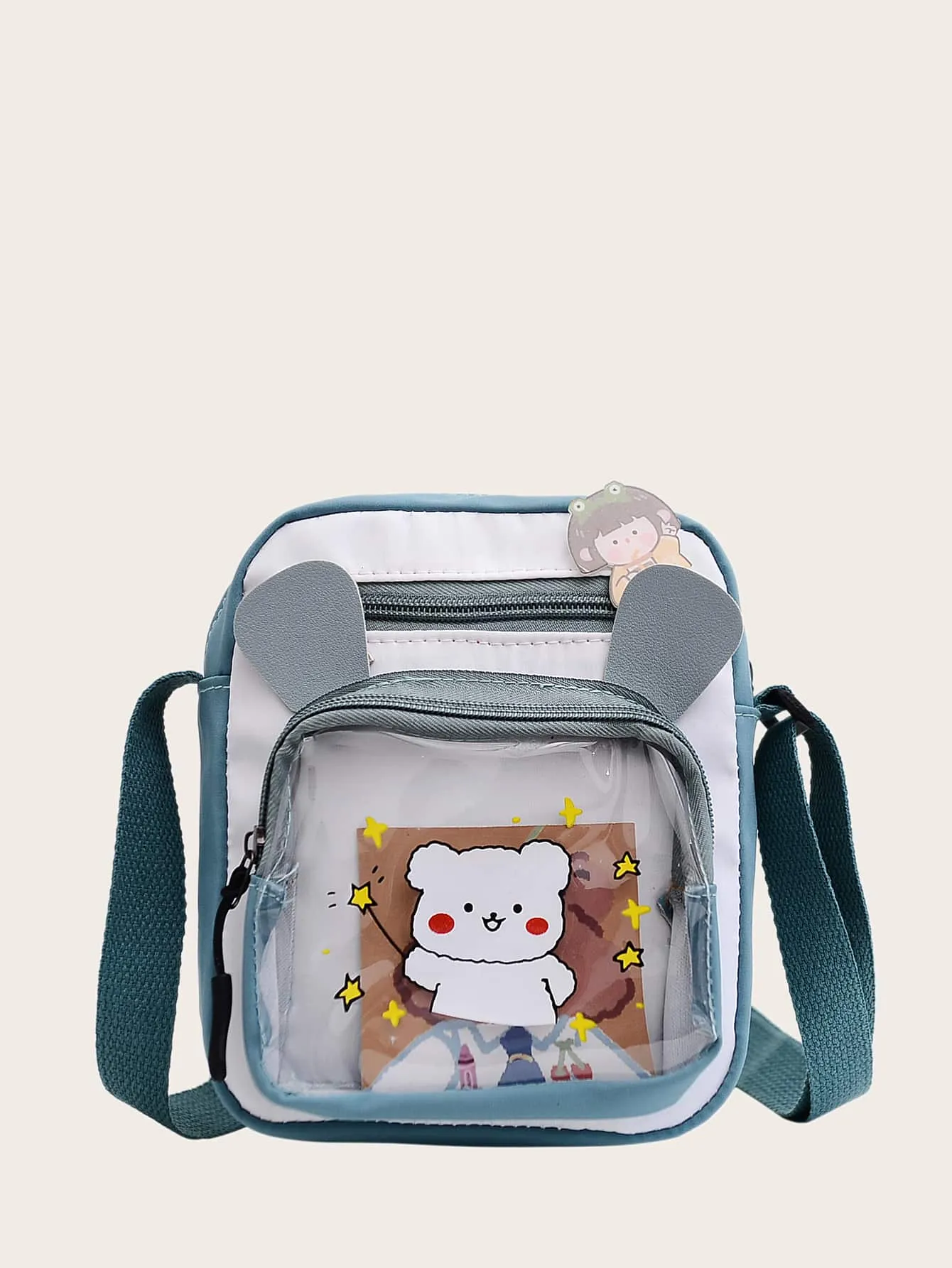 Type: Square BagStyle: PreppyColor: MulticolorStrap Type: AdjustableBag Size: SmallPattern Type: CartoonMaterial: NylonComposition: 90% Nylon, 10% Plastic