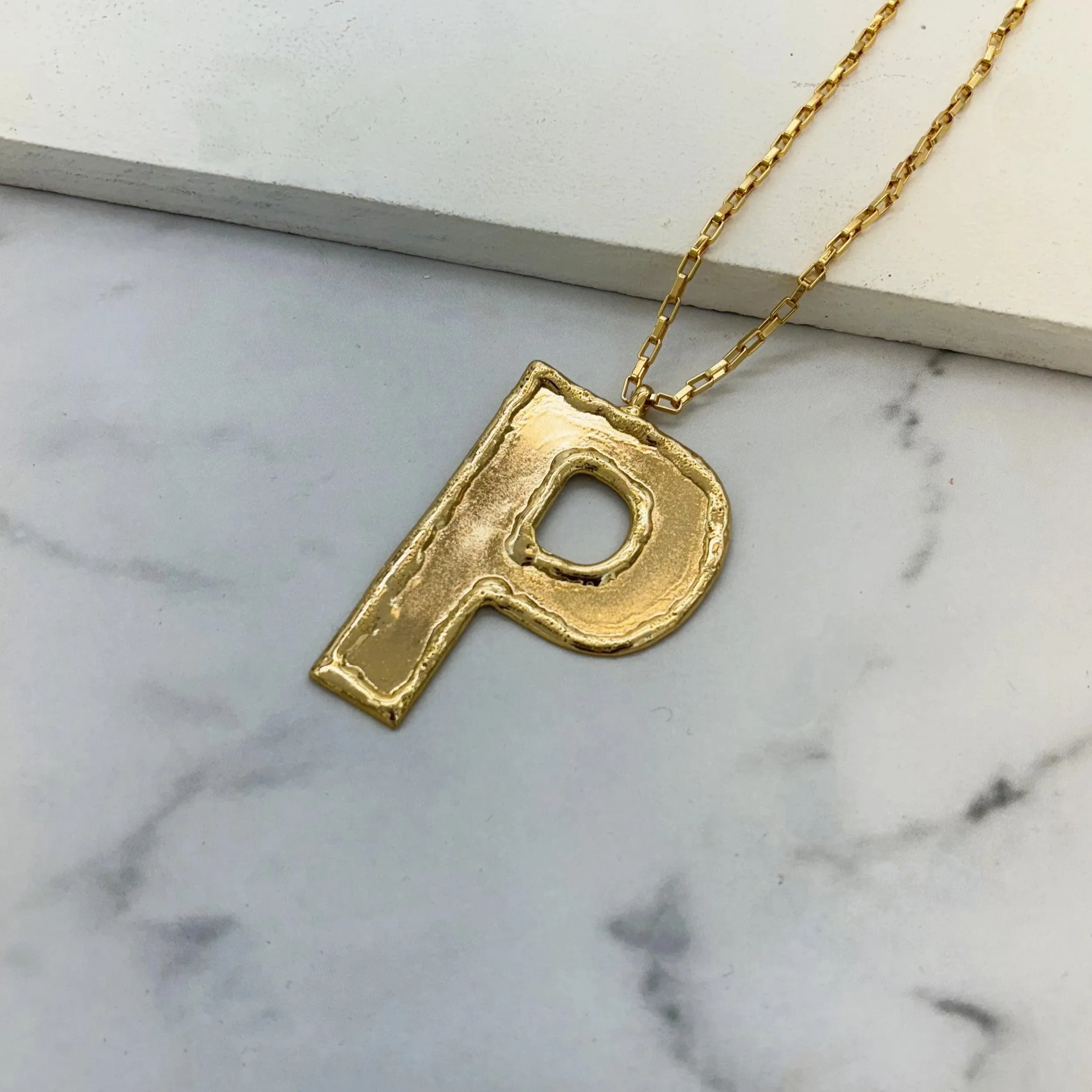 TFC Big Letter P - 24K Gold Plated Long Pendant Necklace